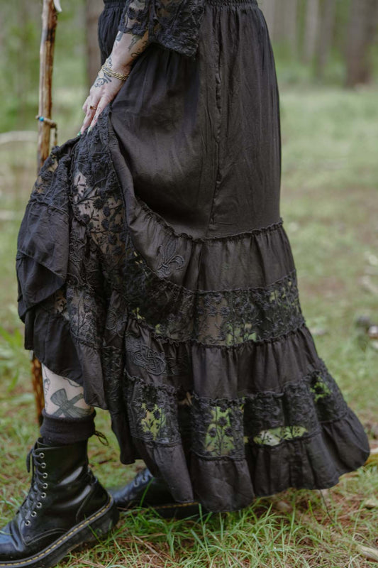 Celtic Embroidered Maxi Skirt in Black