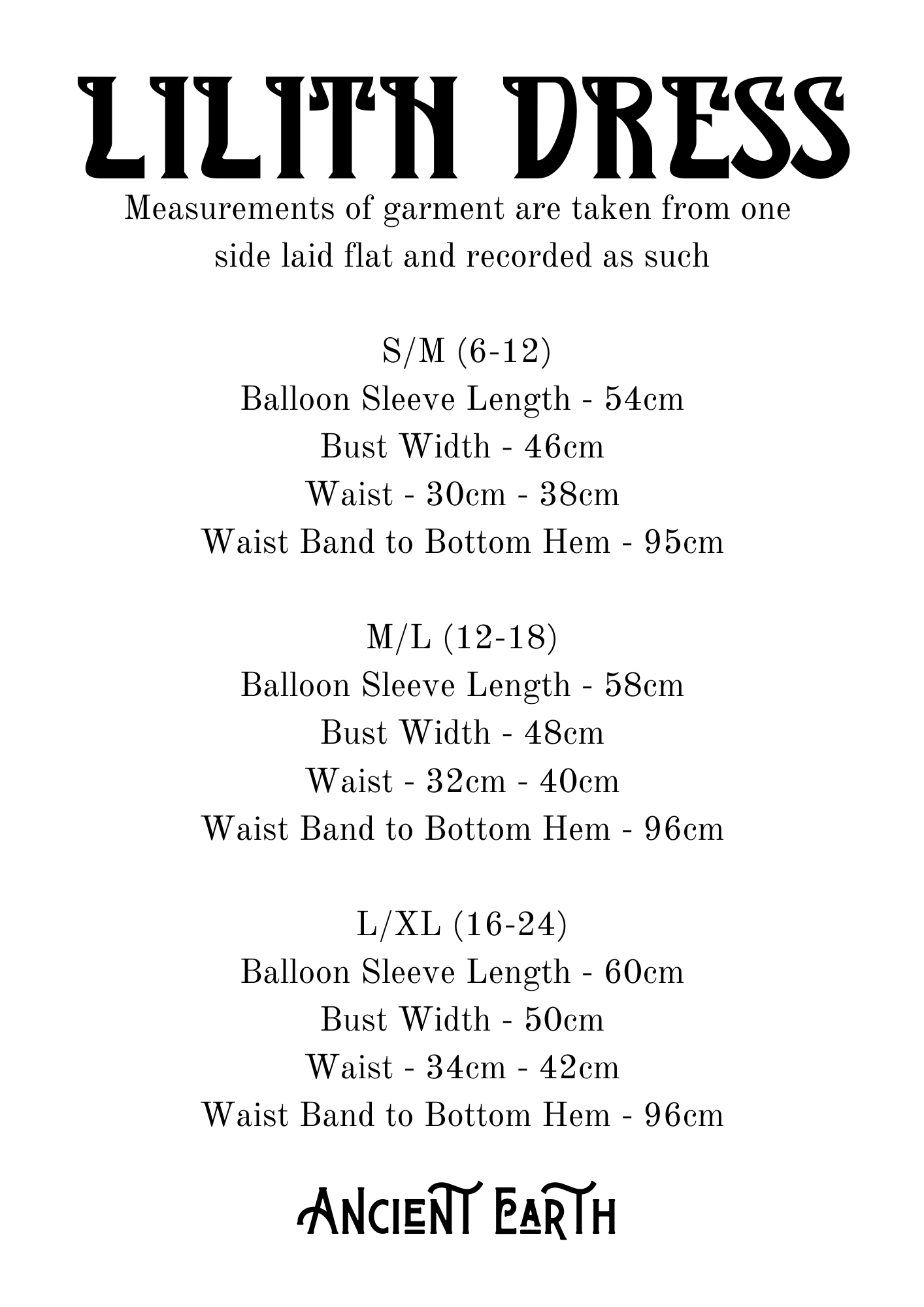 Measurements and shown in image. Model is wearing M/L and is a size UK16